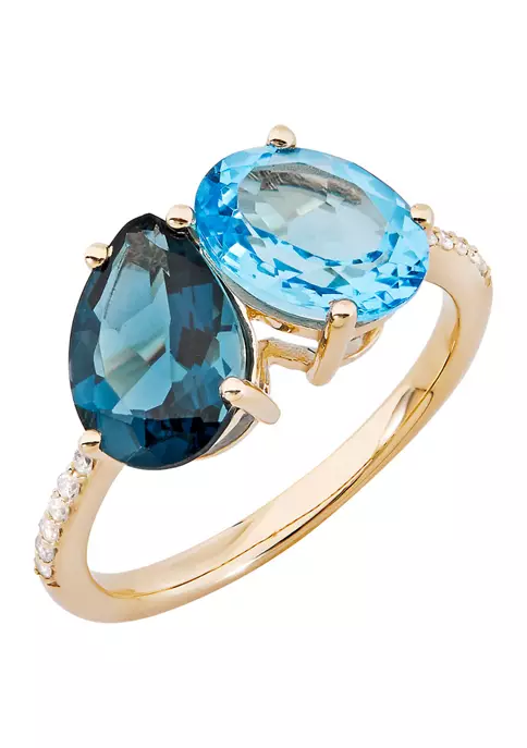 - 14 Diamonds, 1 Swiss Blue Topaz, 1 London Blue Topaz