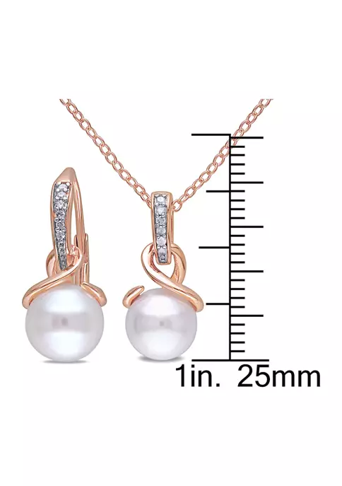 - Leverback, Spring ring clasp, 3 pearl, 18 diamond