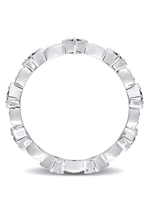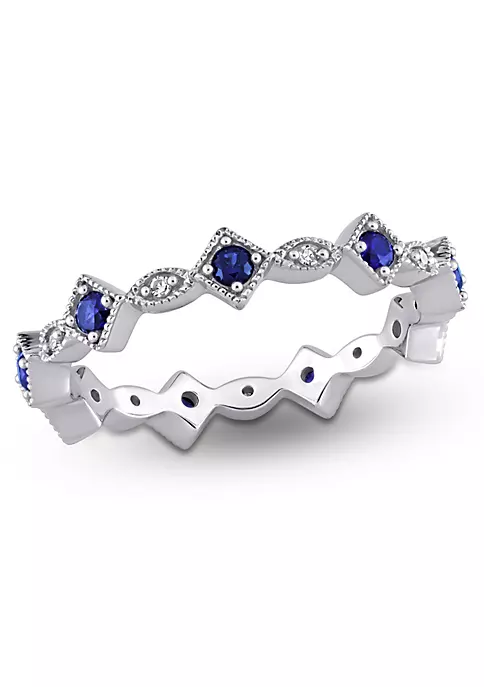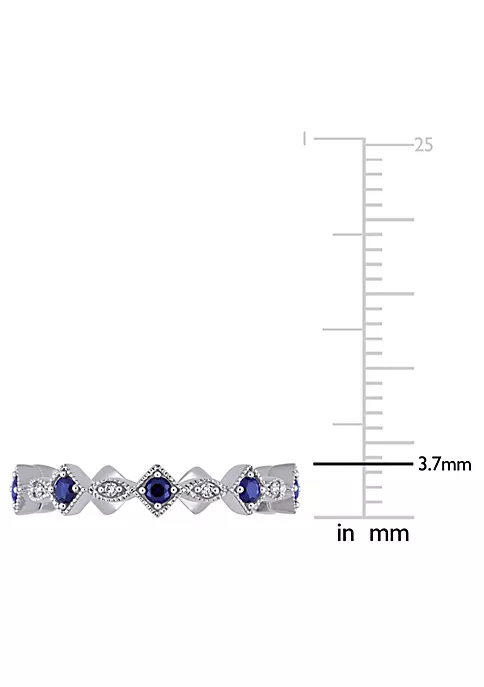 - 1/2 ct. t.g.w. created blue sapphire, 1/10 ct. t.w. diamond