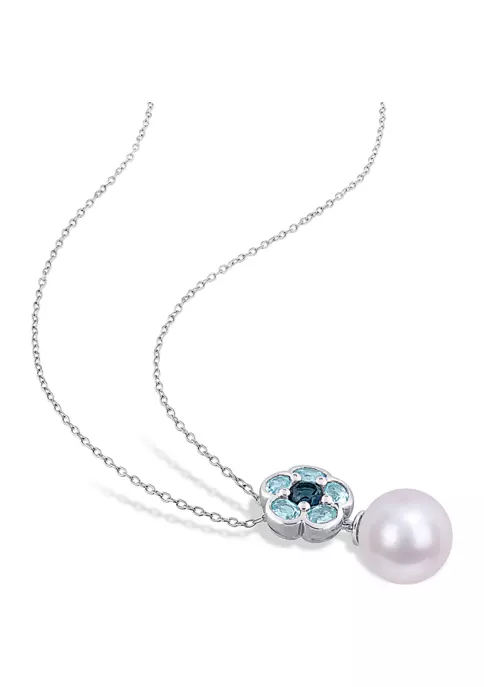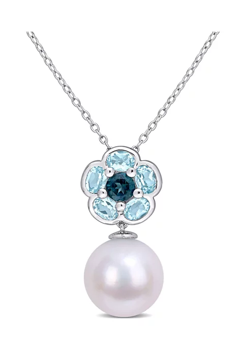 - Spring ring clasp, 1 pearl, 1 london blue topaz, 5 sky blue topaz