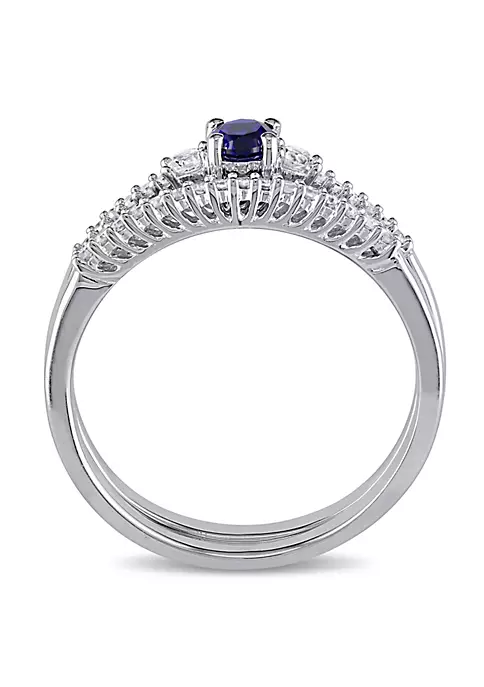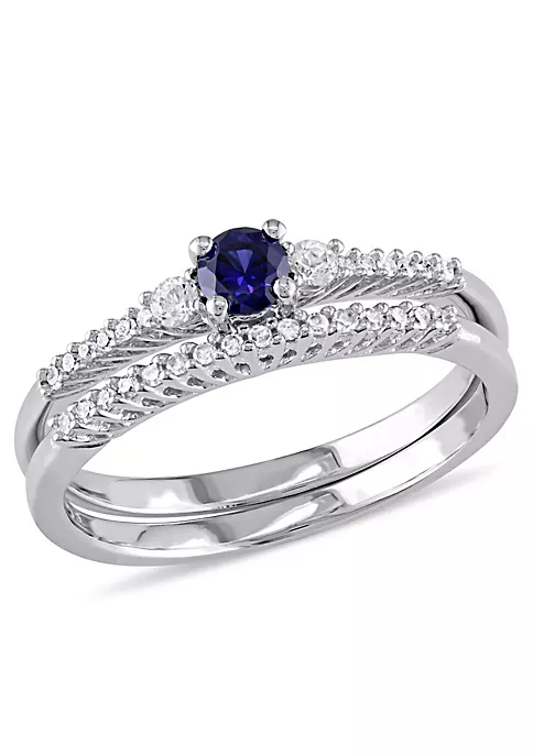 - 1/3 ct. t.g.w. created blue sapphire, created white sapphire, 1/10 ct. t.w. diamond