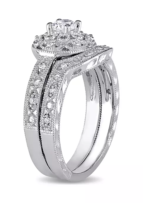 - 1/3 ct. t.w. Created White Sapphire and 1/10 ct. t.w. Diamond