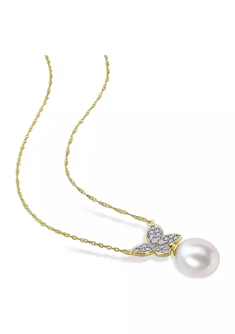 - Post back, Spring ring clasp, 3 pearl, 62 diamond