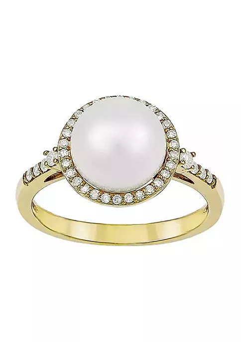 Brand new ⭐ Sterling Silver White Cultured Freshwater Pearl and Diamond Ring by Belk & Co. 🌟