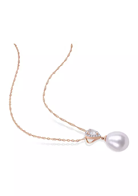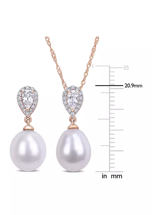 - Post back, Spring ring clasp, 3 pearl, 3 white topaz, 42 diamond