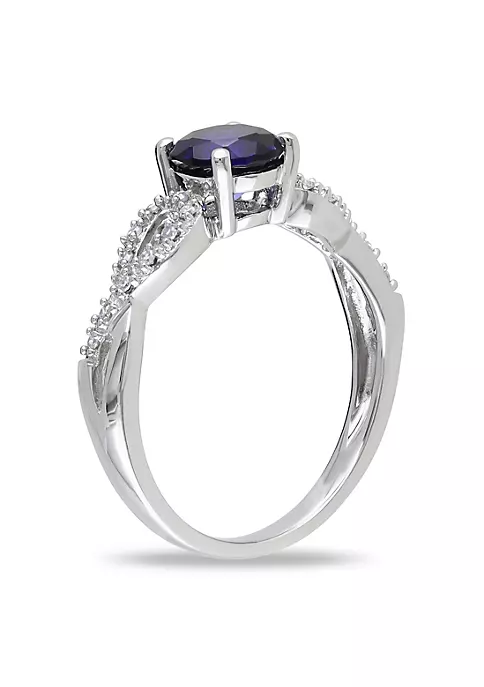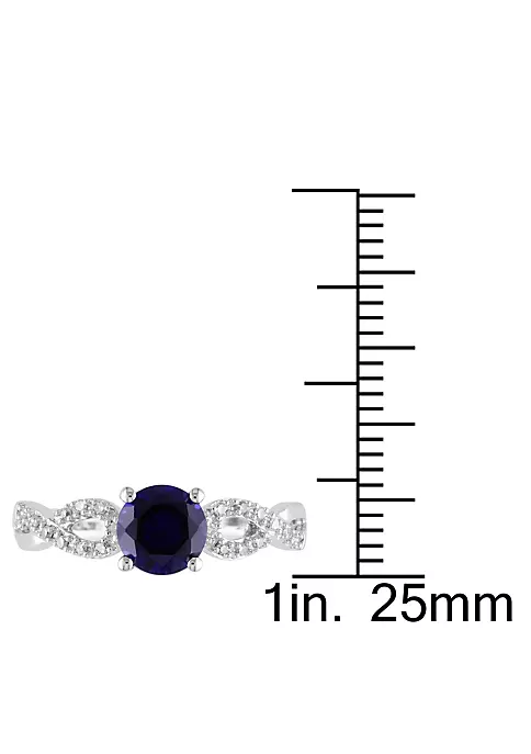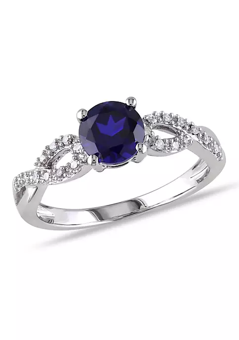 - 1.01 ct. t.g.w. created blue sapphire, 1/10 ct. t.w. diamond