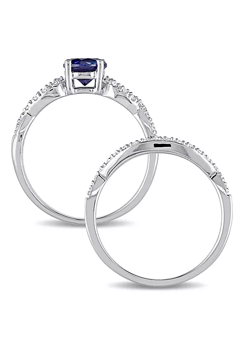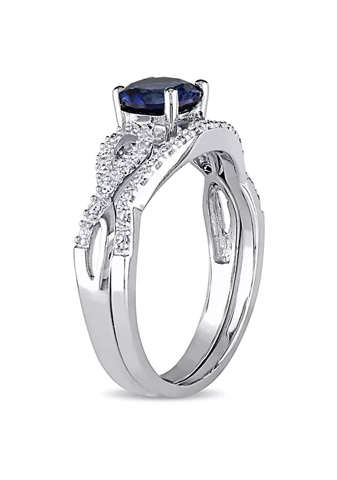 - 1.01 ct. t.g.w. created blue sapphire, 1/6 ct. t.w. diamond
