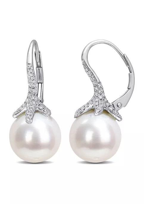 - Leverback, Jewelry clasp, 2 pearl, 126 diamond