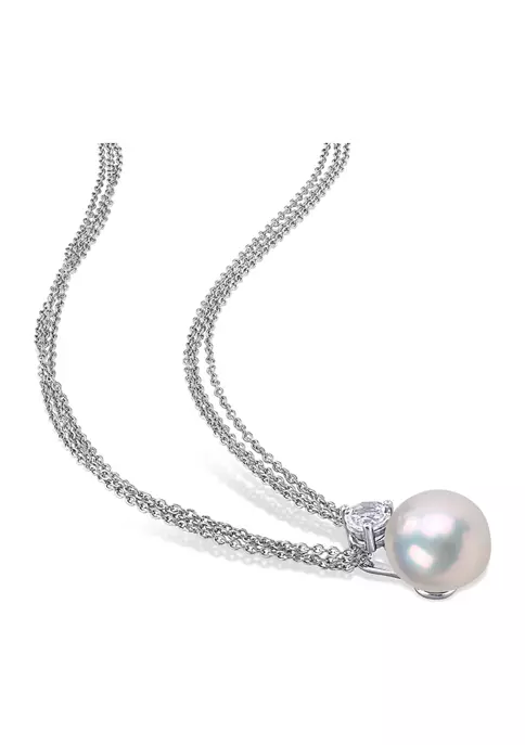 - Omega clip earring, Lobster closure, 3 pearl, 3 white topaz