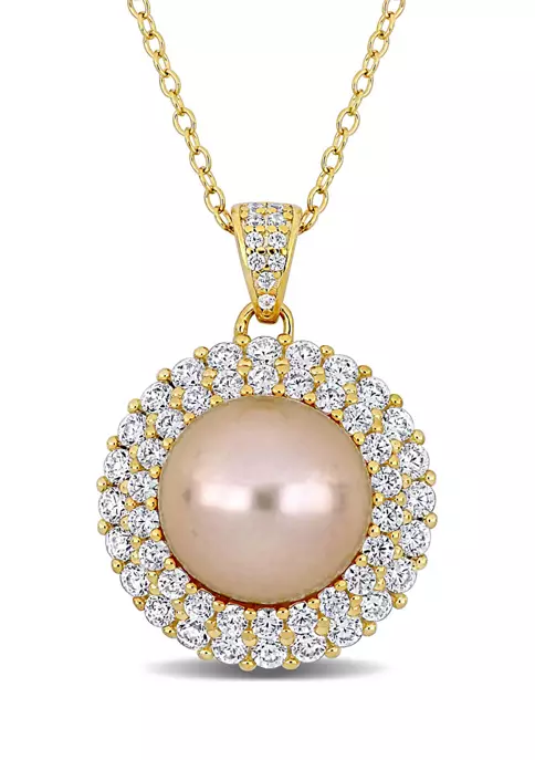 - Spring ring clasp, 1 pearl, 58 cubic zirconia