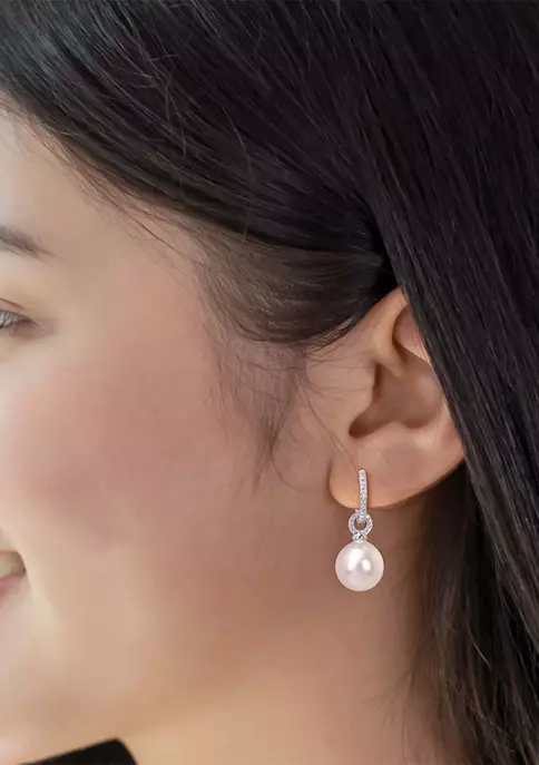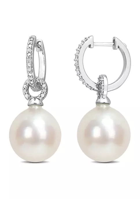 - Hinge post earring, 2 pearls, 18 diamonds