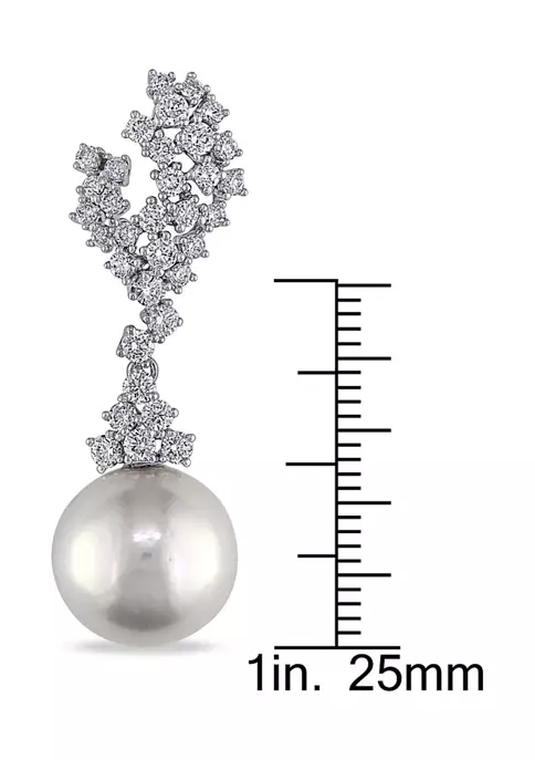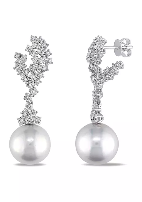 - Post back, Butterfly clasp, 2 pearl, 68 diamond