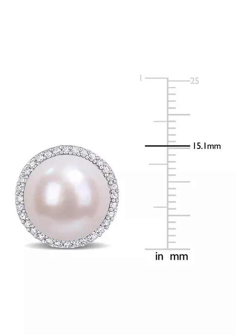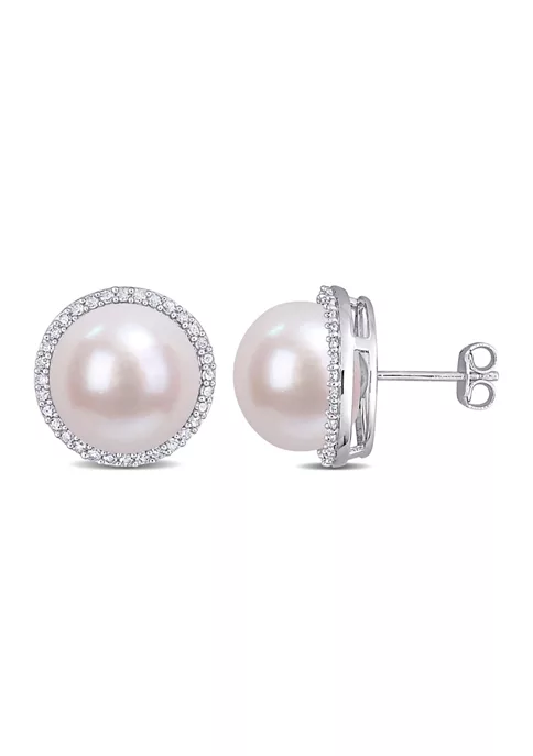 - Post back, Butterfly clasp, 2 pearl, 64 diamond