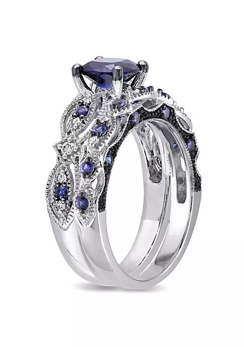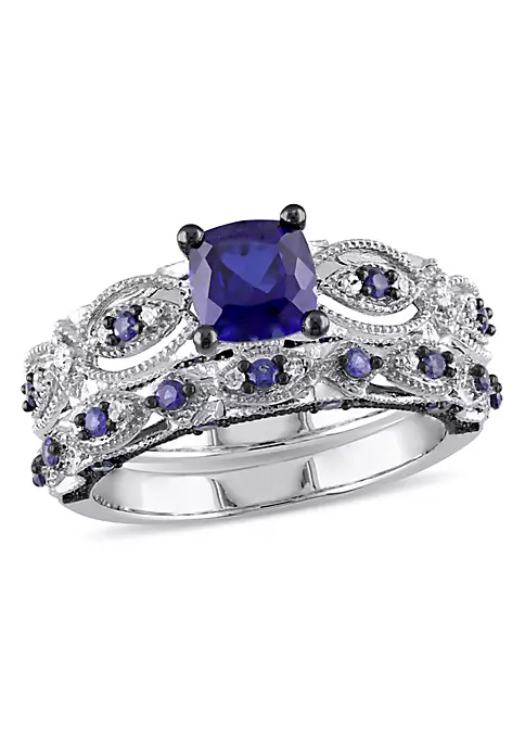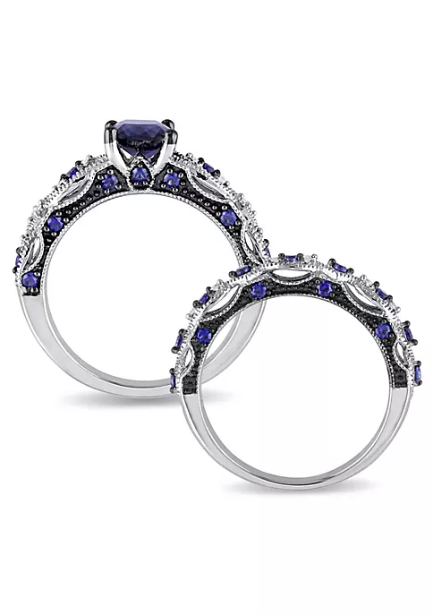- 1.94 ct. t.g.w. created blue sapphire, 1/10 ct. t.w. diamond