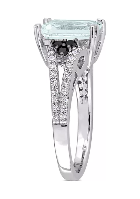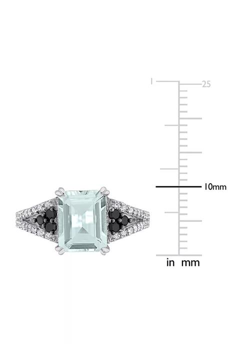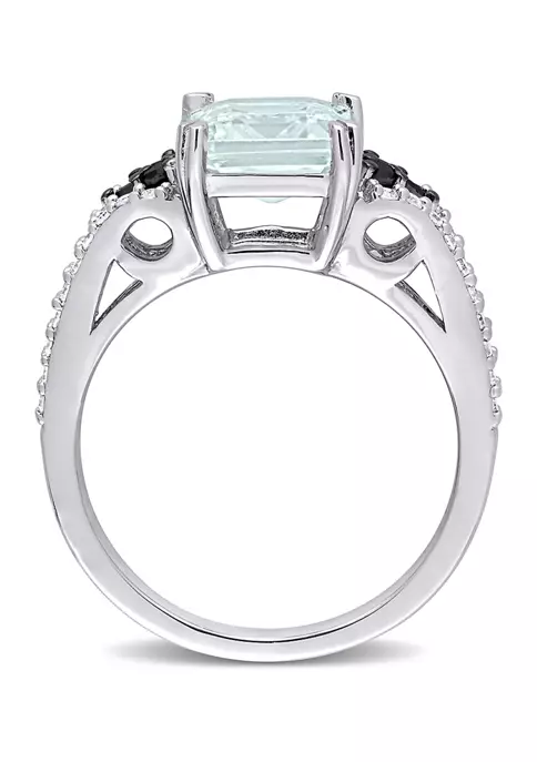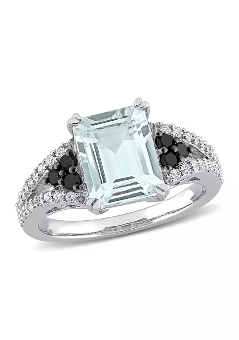 - 2 ct. t.g.w. aquamarine, 0.381 ct. t.w. black and white diamond