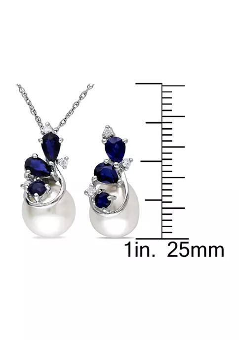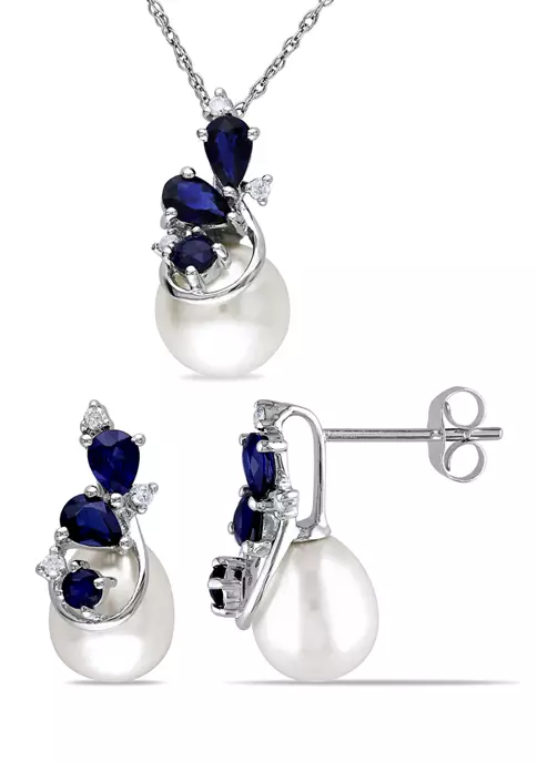 - 3 pearls, 9 sapphires 9 diamonds