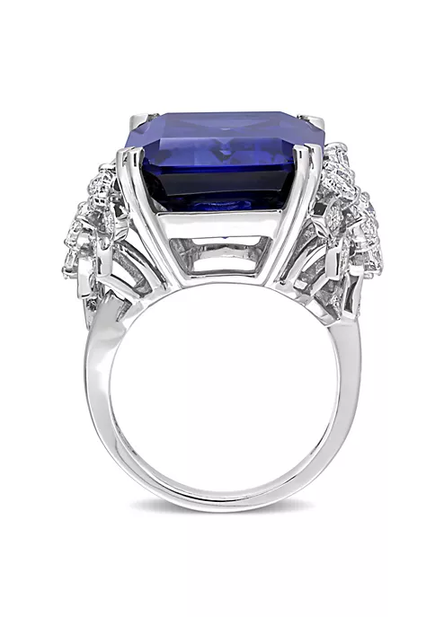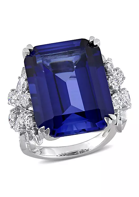 - 27 ct. t.g.w. created blue sapphire, 1.75 ct. t.w. diamond
