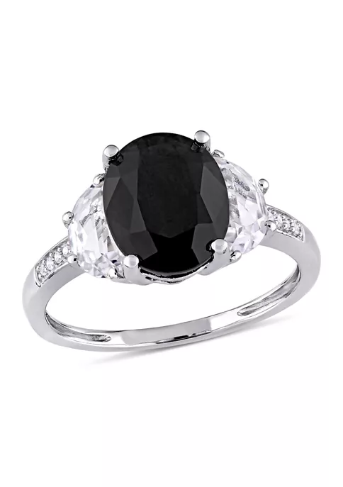 - 4.4 ct. t.g.w. black sapphire and created white sapphire, 0.024 ct. t.w. diamond