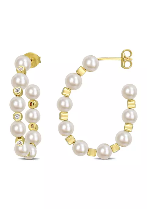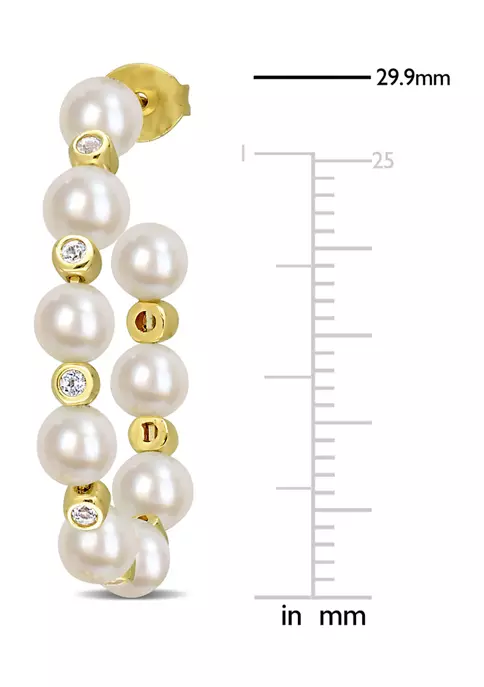 - Post back, Butterfly clasp, 18 pearl, 16 white topaz