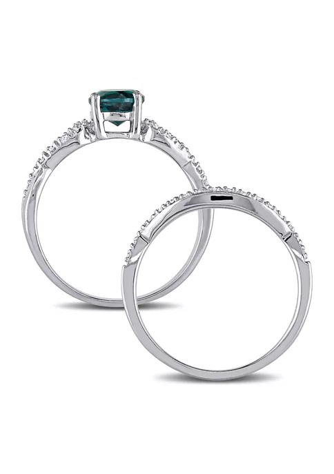 - 4/5 ct. t.w. Created Emerald, 1/6 ct. t.w. Diamond
