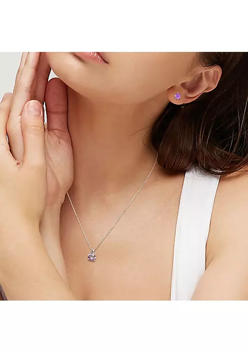- Post back, Spring ring clasp, 3 amethyst
