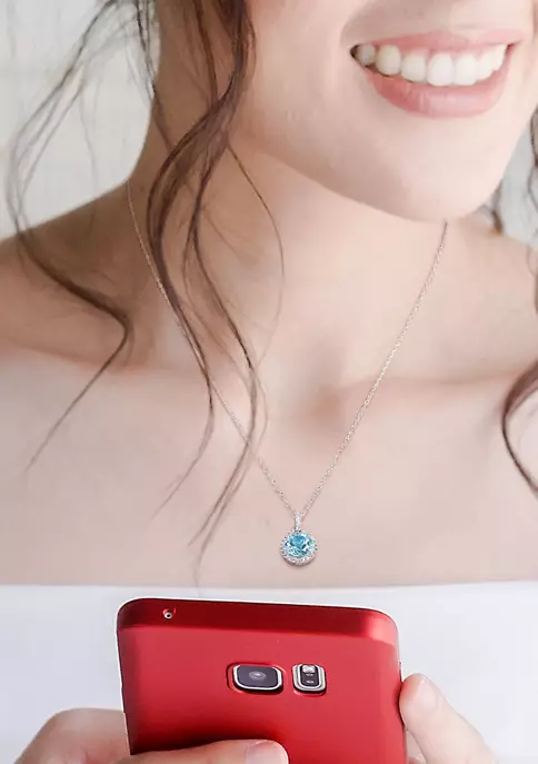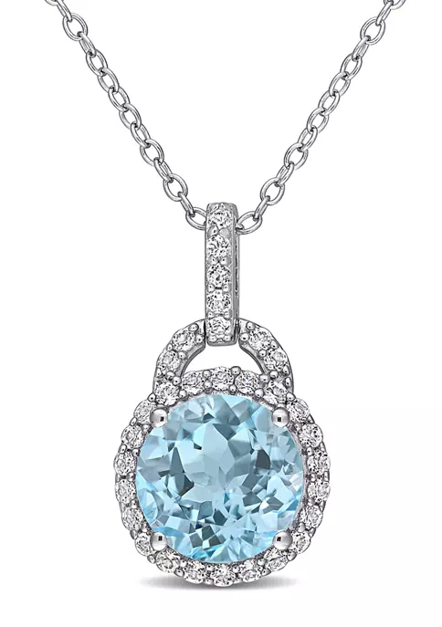 - Spring ring clasp, 1 sky blue topaz, 31 white topaz