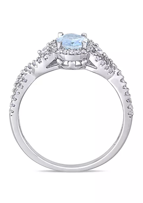 - 5/8 ct. t.w. Aquamarine, 1/10 ct. t.w. White Sapphire, and 1/3 ct. t.w. Diamond