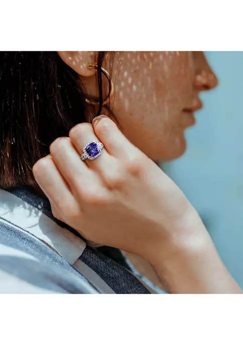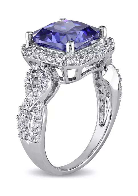 - 6.76 ct. t.w. created tanzanite, created white sapphire