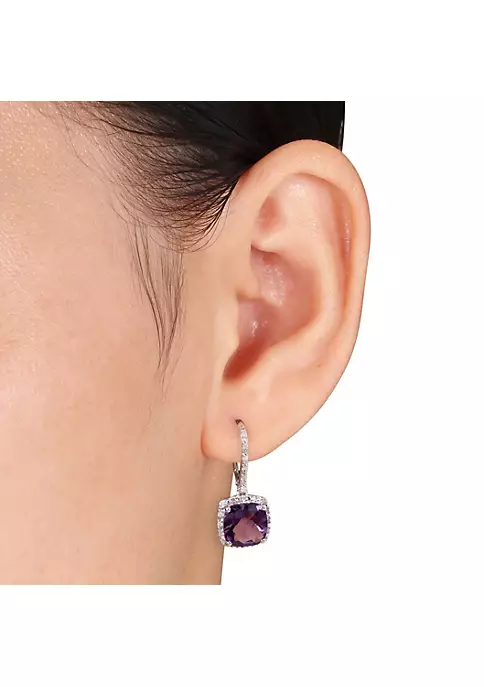 - Leverback, Jewelry clasp, 2 amethyst, 44 diamond