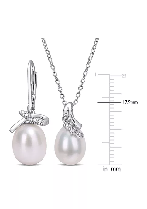 - Leverback, Spring ring clasp, 3 pearl, 3 diamond
