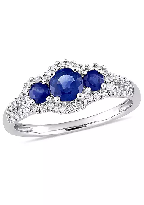 - 7/8 ct. t.g.w. blue sapphire, 1/4 ct. t.w. diamond