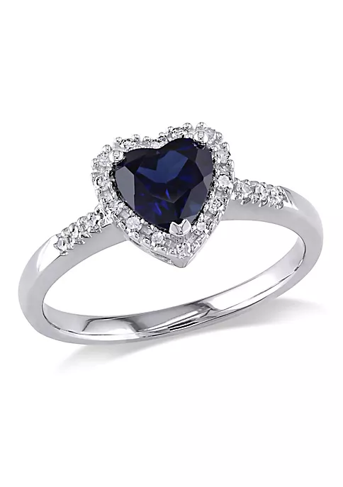- 7/8 ct. t.g.w. created blue sapphire, 1/10 ct. t.w. diamond