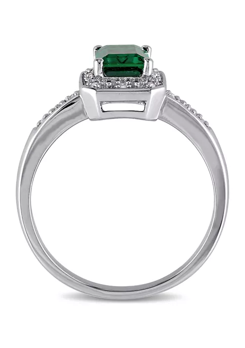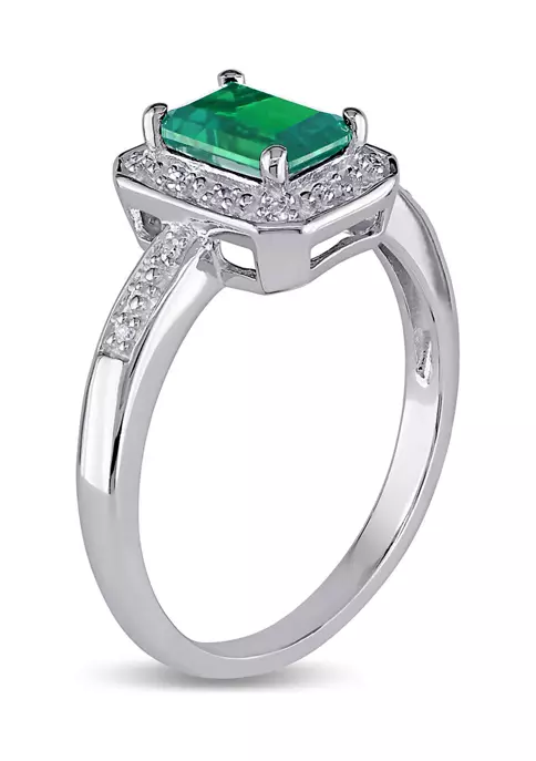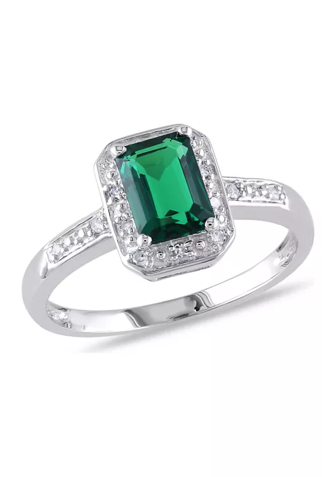 - 7/8 ct. t.w. Created Emerald, 1/10 ct. t.w. Diamond