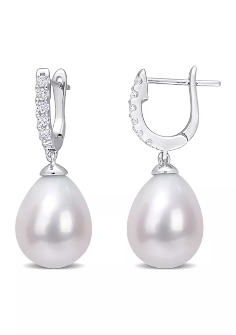 - Click top closure, Jewelry clasp, 2 pearl, 12 white cubic zirconia