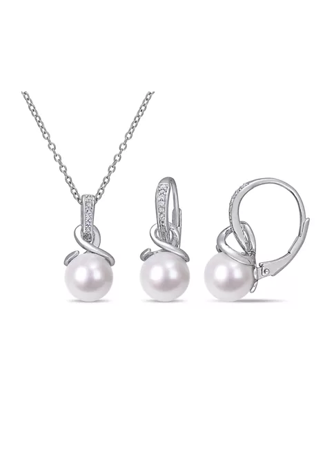 - Leverback, Spring ring clasp, 3 pearl, 18 diamond