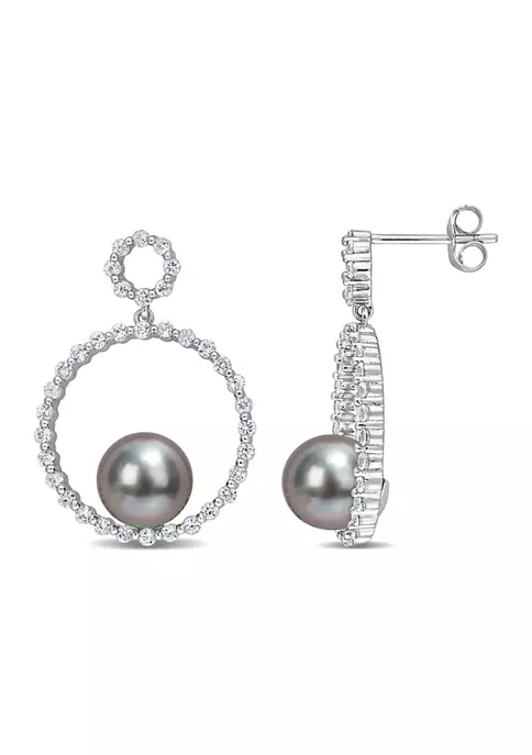 - Post back, Butterfly clasp, 2 pearl, 72 white sapphire