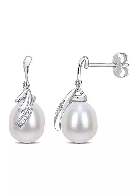 - Post back, Butterfly clasp, 2 pearl, 2 diamond