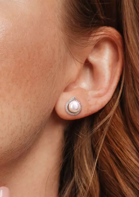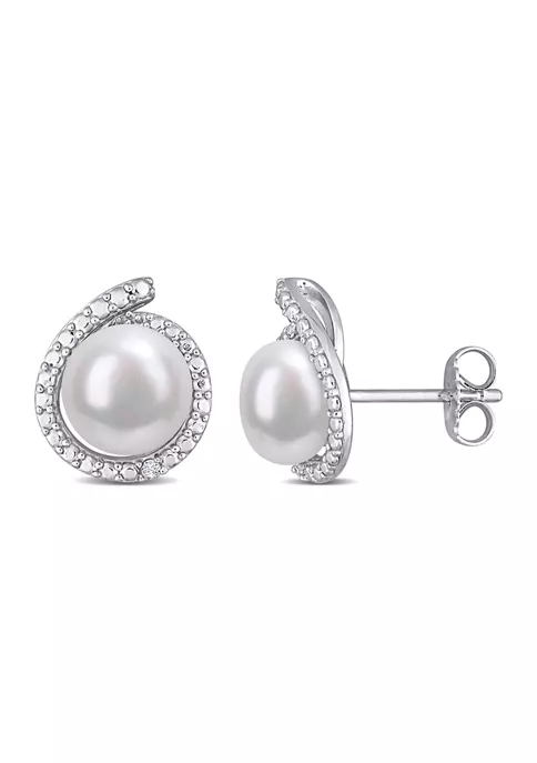 - Post back, Butterfly clasp, 2 pearl, 2 diamond