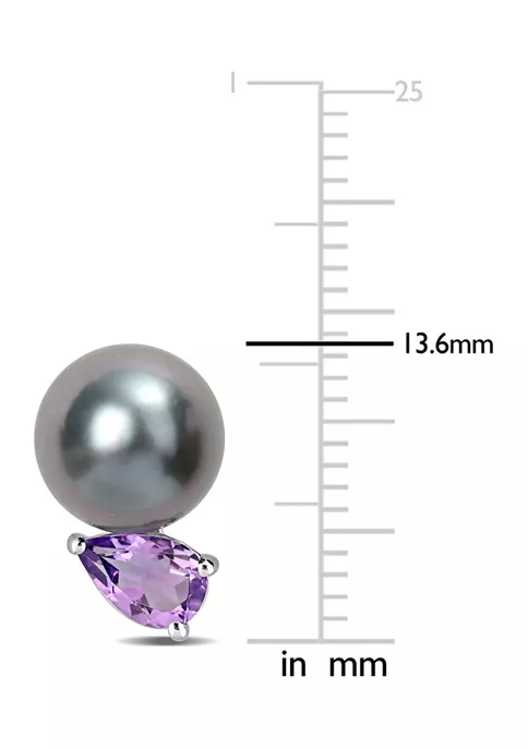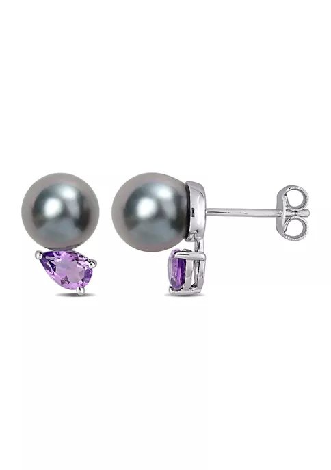 - Post back, Butterfly clasp, 2 pearl, 2 amethyst-africa