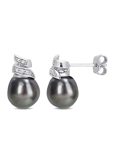 - Post back, Butterfly clasp, 2 pearl, 2 diamond