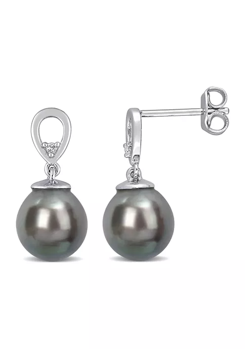 - Post back, Butterfly clasp, 2 pearl, 2 white topaz