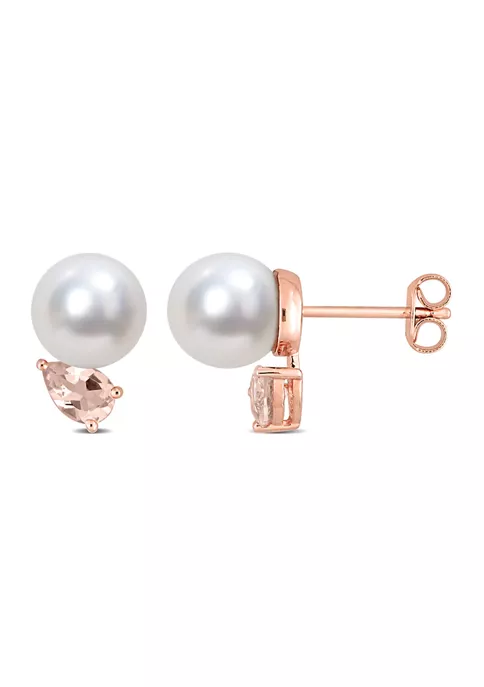 - Post back, Butterfly clasp, 2 pearl, 2 morganite