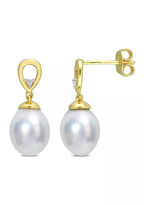 - Post back, Butterfly clasp, 2 pearl, 2 white topaz