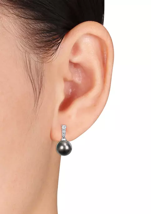 - Post back, Butterfly clasp, 2 pearl, 6 diamond