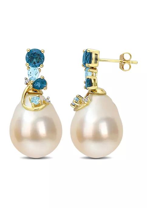 - Post back, 2 pearls, 8 blue topaz, 4 diamonds
