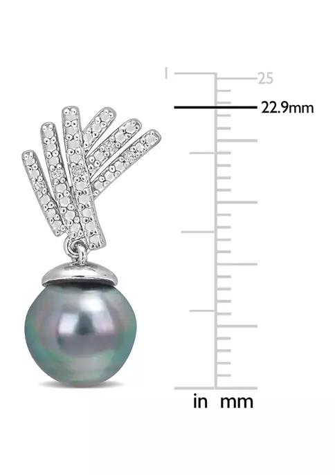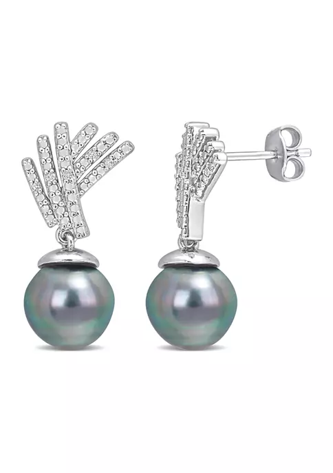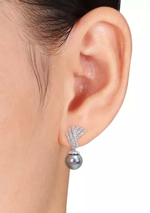 - Post back, Butterfly clasp, 2 pearl, 10 diamond
