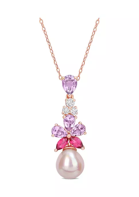 - Spring ring clasp, 1 pearl, 4 rose de france, 2 pink topaz, 3 white topaz