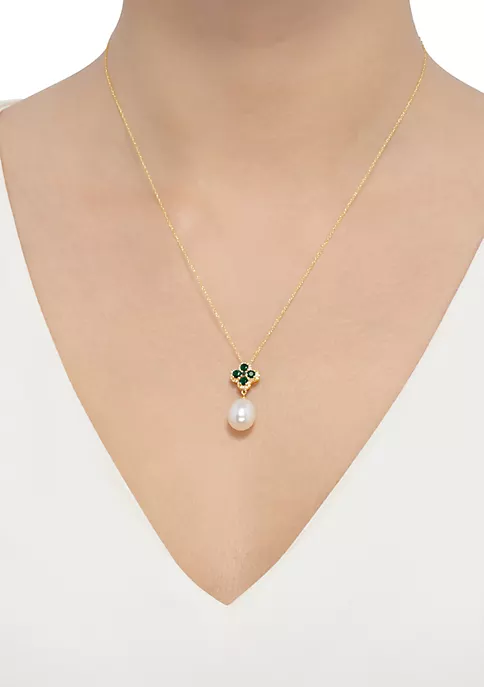 - 9 ct. White Pearl, 0.5 ct. t.w. Emeralds, and 1/10 ct. t.w. Diamonds