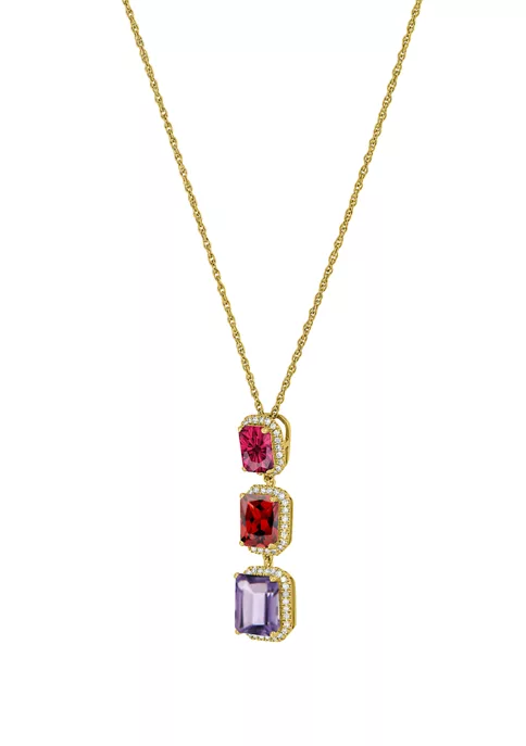 - 1 Amethyst, 2 Garnet, 74 White Topaz