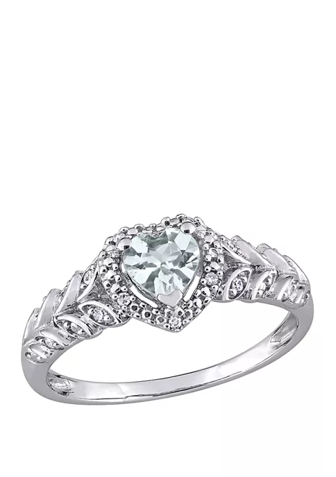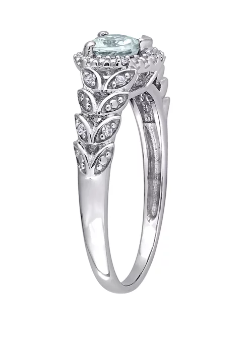 - 1/3 ct. t.w. Aquamarine, 1/10 ct. t.w. Diamond